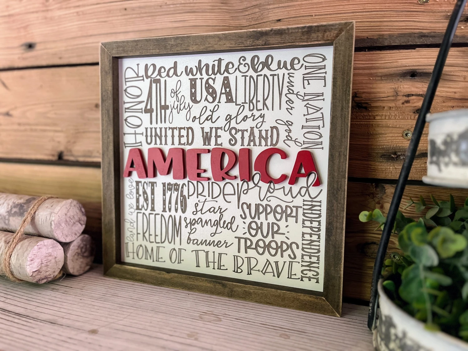 Show your American pride with this small subway art sign mentioning the best things about our country!