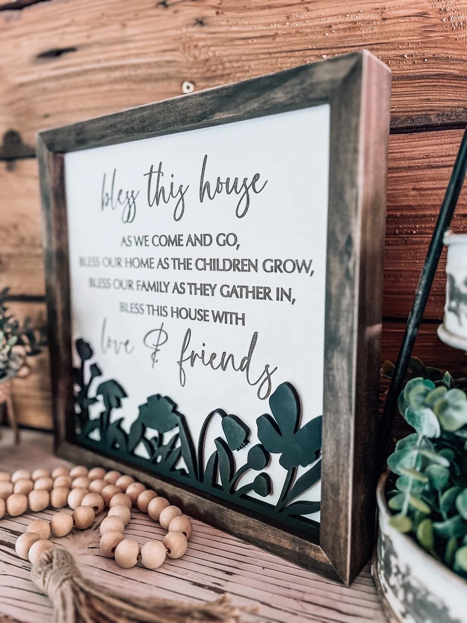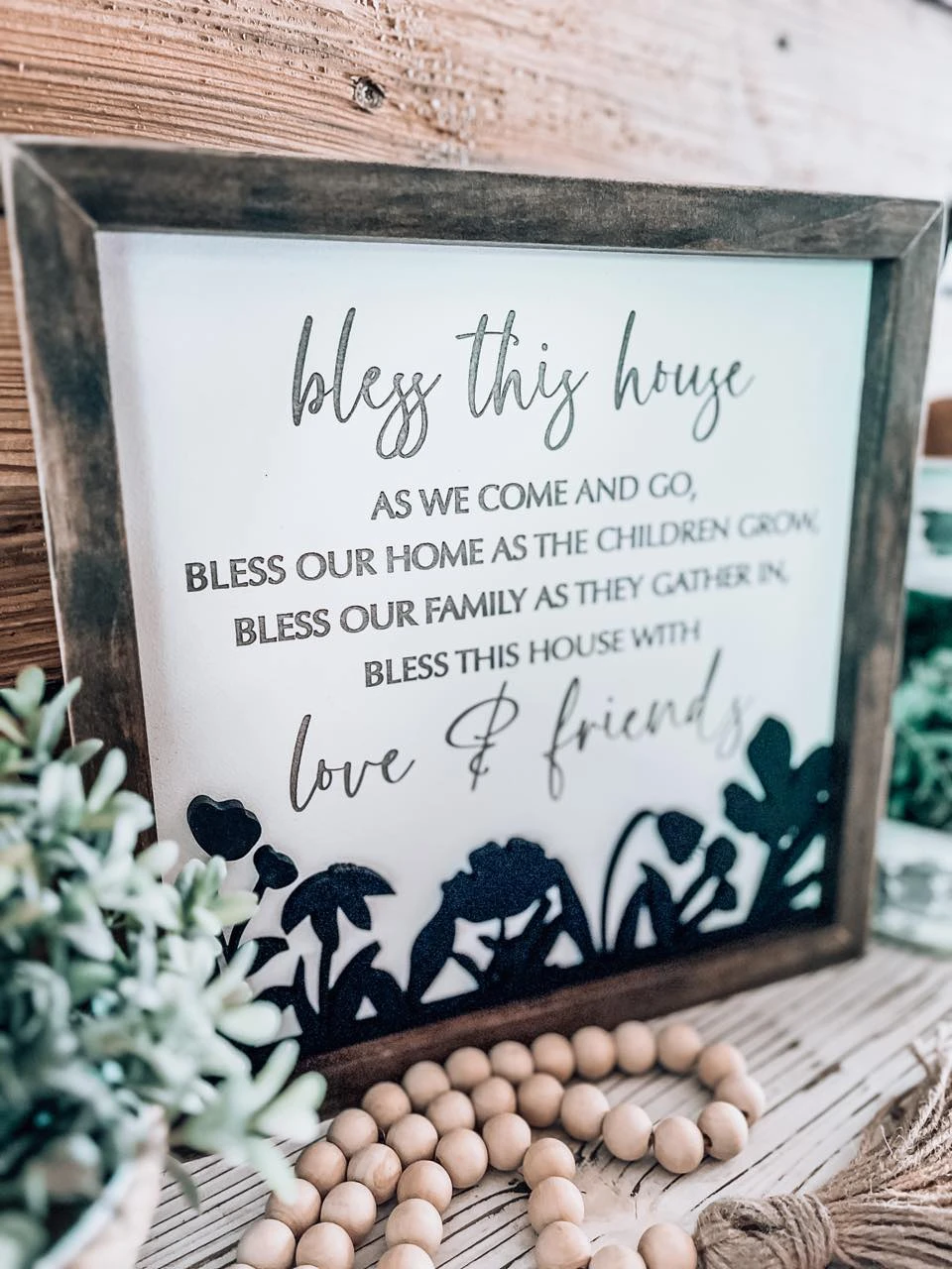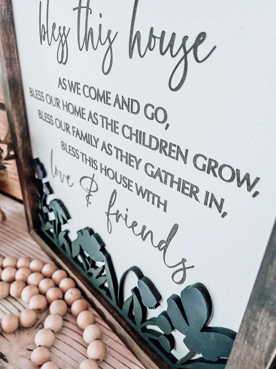 A simply beautiful wood sign with engraved letters and a 3D floral cutout – making it a stunning addition to any room!