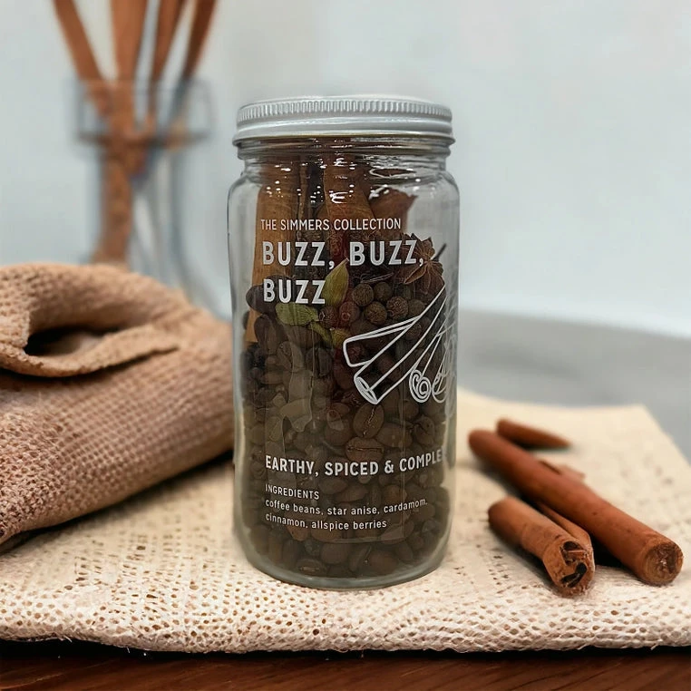 INGREDIENTS: coffee beans, cardamom, star anise, cinnamon, all spice berries Our sustainable simmer jars are hand selected and filled as part of our plastic free, zero waste grocery in Montclair, NJ. Simply pour the contents of the jar into a pot of water and simmer on low. Reuse the contents up to 3 times. When finished, compost the contents and repurpose or refill the jar when finished with any items of your choice! All jars ship in reused materials and FREE OF PLASTIC PACKAGING.