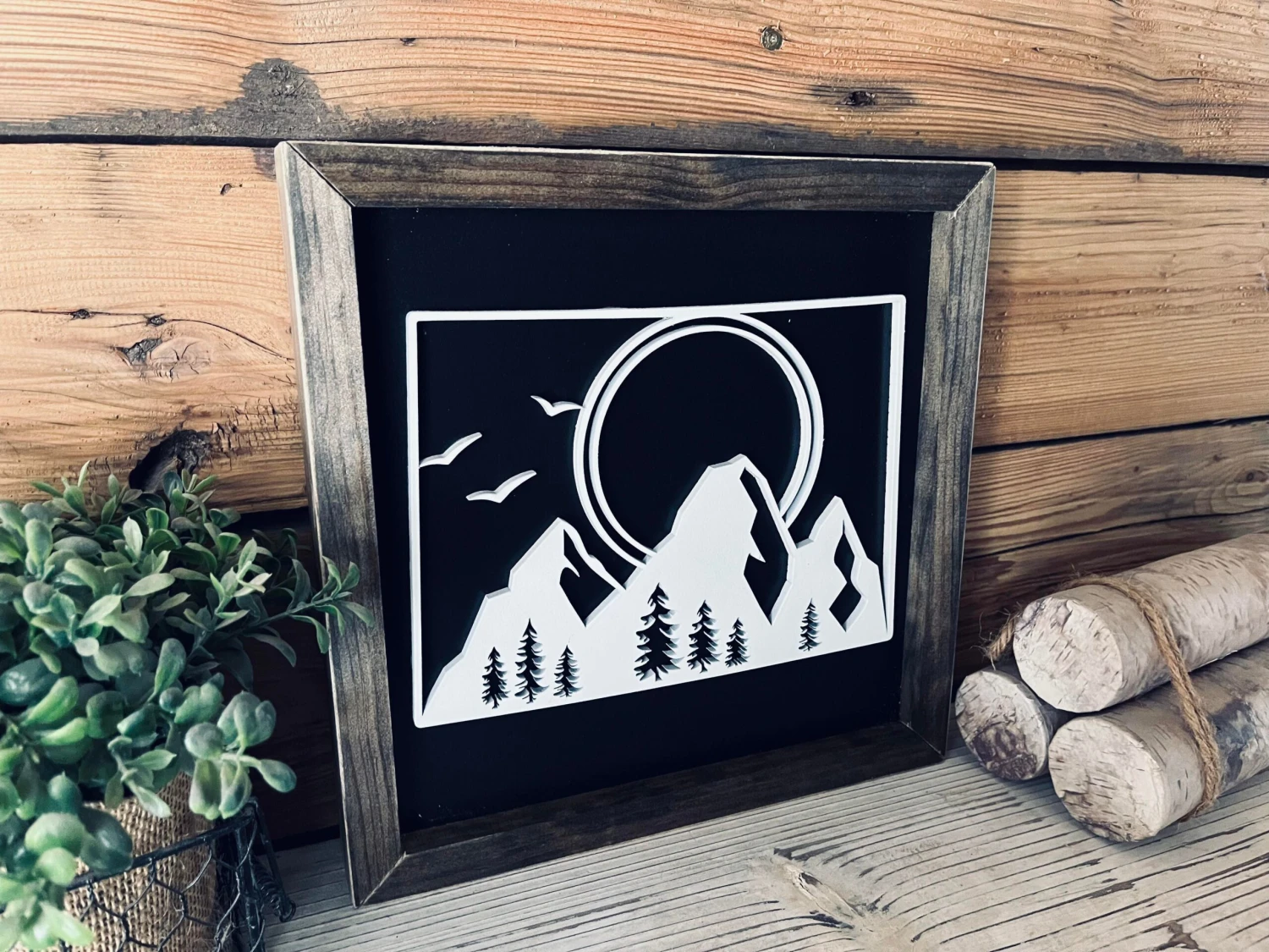 - Design is laser cut, painted and glued onto the background board – giving it the 3-dimentional look.