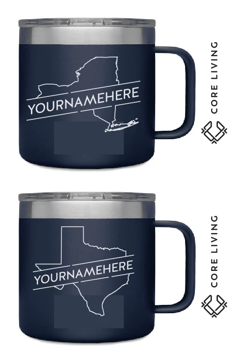 1. Engraved 14 ounce mug with your logo on handle and customer’s name on the front. Please include in notes their business name.