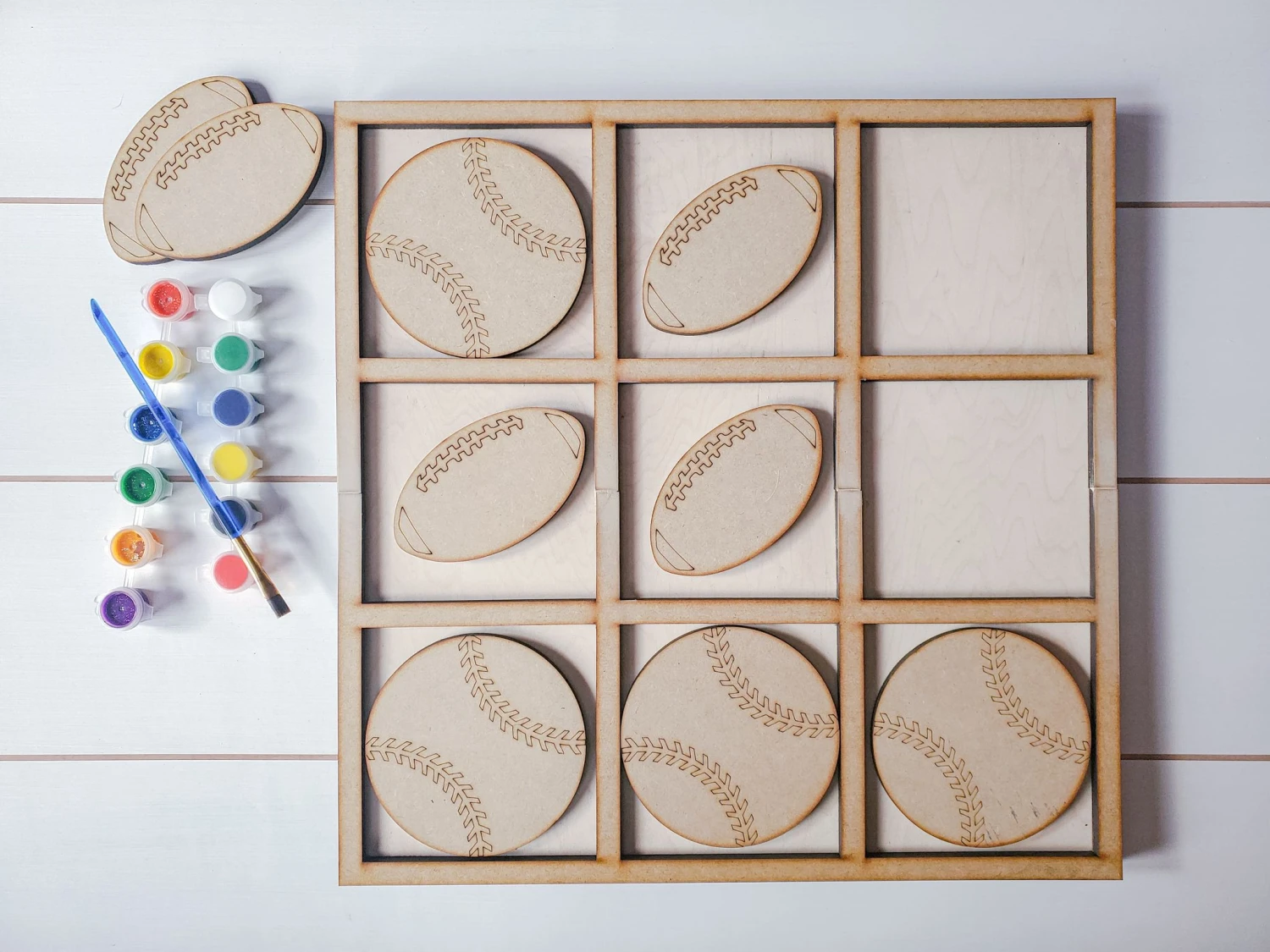 Keep your kids or even yourself busy with these wood cutouts all ready for you to paint and then have some fun games of Tic Tac Toe! The lines are engraved which helps make painting easy!