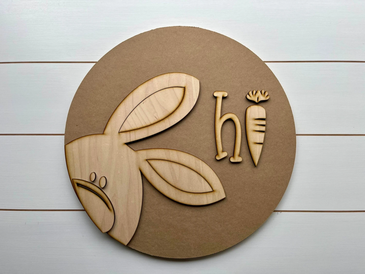 - Wood cutout of background board that has outlines scored of where letters and design will be placed