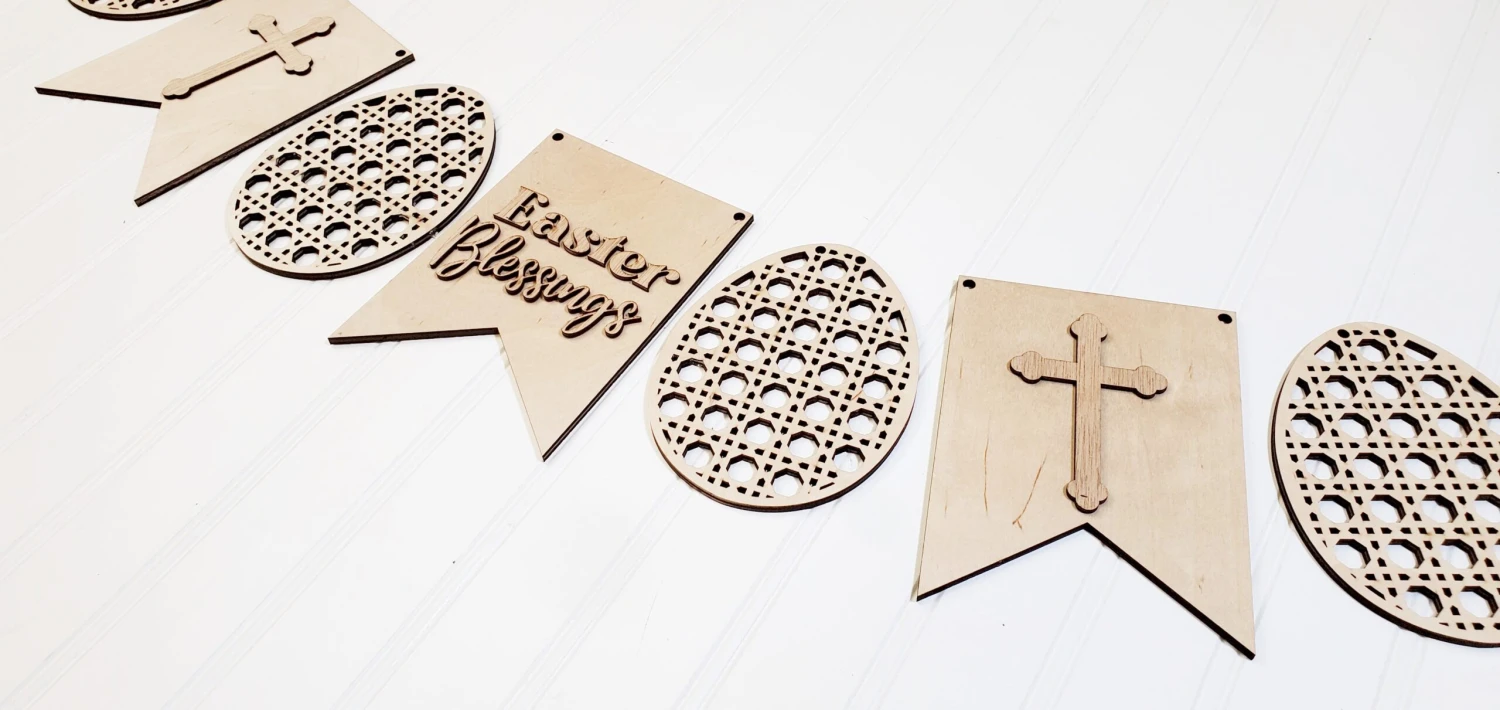 You can purchase this in 2 different ways, just the wood cutouts or a finished version of the banner!
