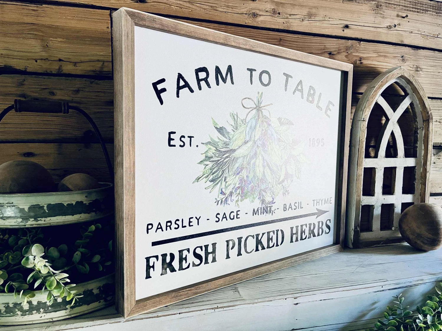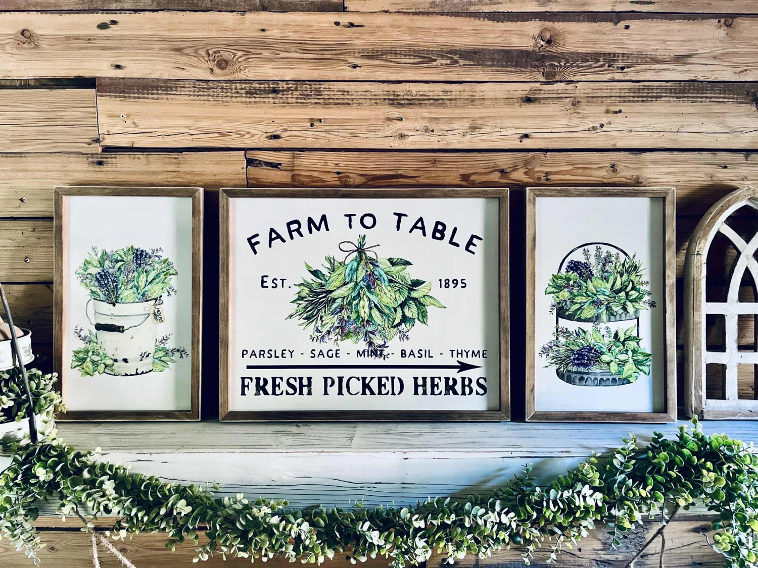 Bring the charm of a farmhouse garden into your home with this beautifully coordinated herb sign collection. Each piece features vivid botanical artwork of fresh herbs like parsley, sage, mint, basil, and thyme—perfect for adding a touch of nature to your kitchen or dining area.