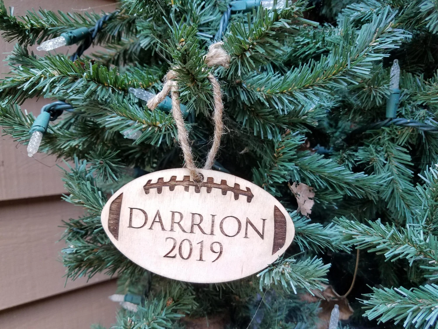 If your kid loves sports as much as mine do then they will love this personalized football ornament!