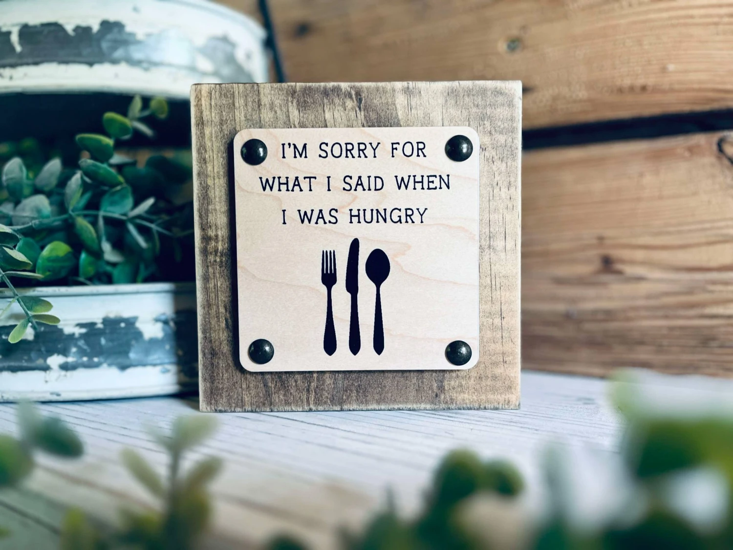 Bring some laughter into your kitchen or gift it to someone who can relate—we all say things we don’t mean when we’re hungry!