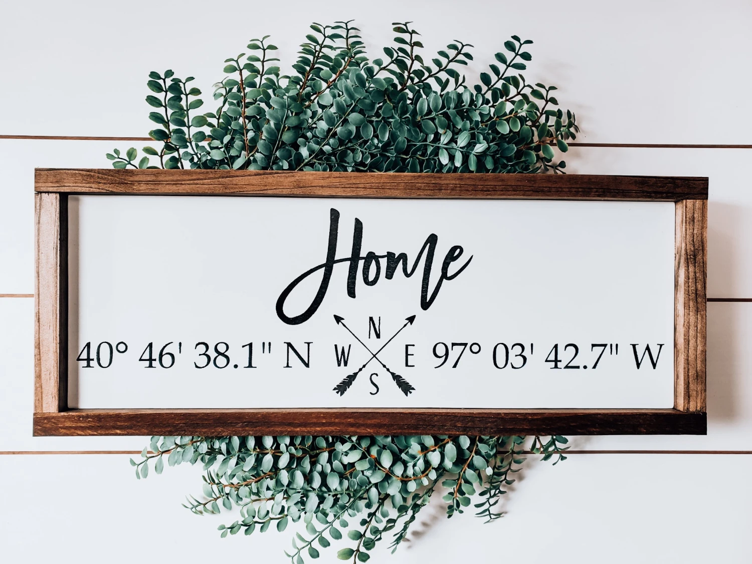 Celebrate your home with this beautiful wooden sign decorated with the directional coordinates of your home.