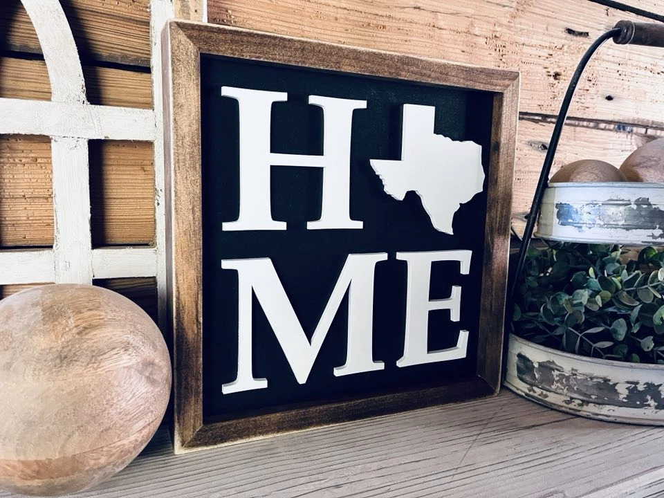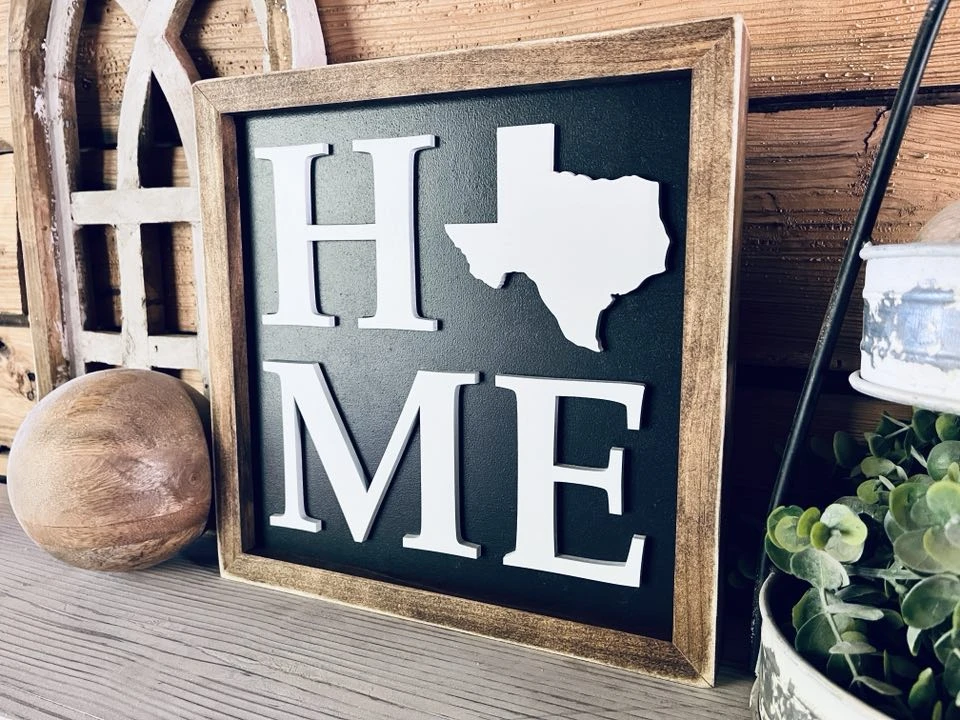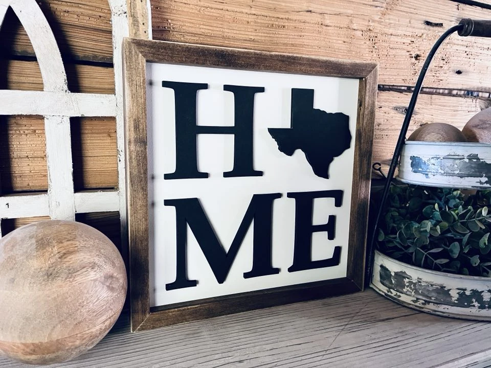 This wood framed sign is sure to add a touch of modern farmhouse to any home. Also makes as a great gift for anyone that calls Texas home.