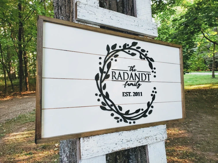 This sign is sure to be a focal point in any room of your home! The 3D cut-out design and wording overlapping the shiplap background creates a stunning and eye-catching visual that is truly unique to your family.