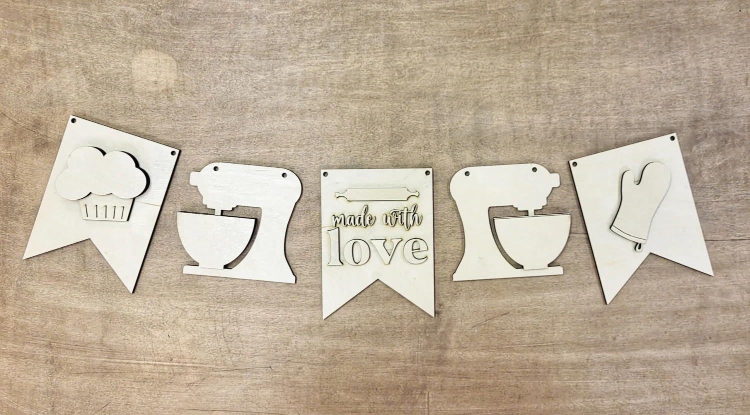 You can purchase this in 2 different ways, just the wood cutouts or a finished version of the banner!