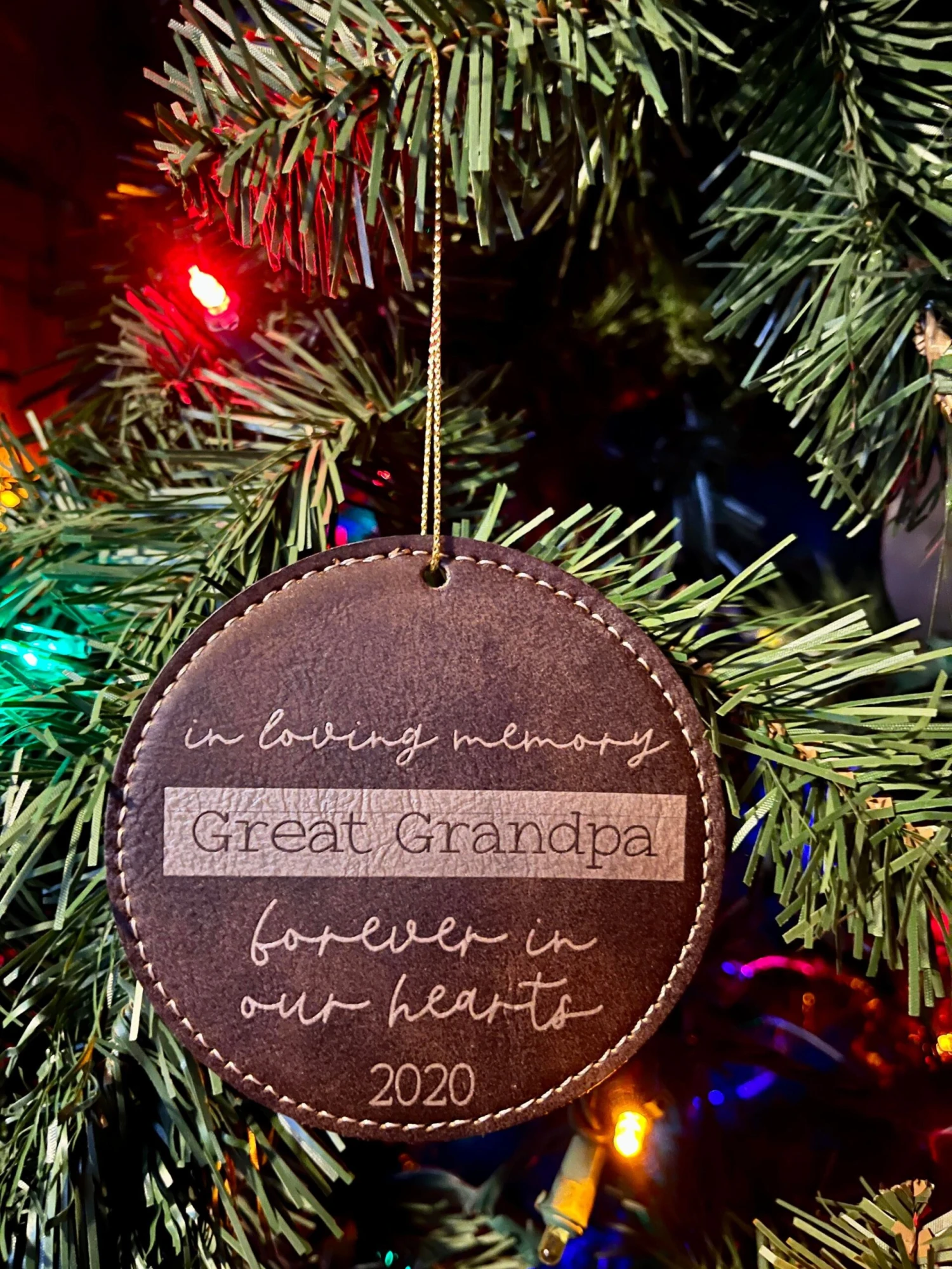 - Ornament is made from laserable leatherette which offers the look and feel of genuine leather at a fraction of the price. This richly textured, synthetic material resists water spots, cleans easily, and is durable enough for the rigors of daily use. The high quality workmanship of each leatherette piece is sure to impress you with its elegant individuality.