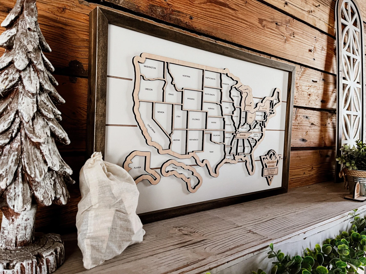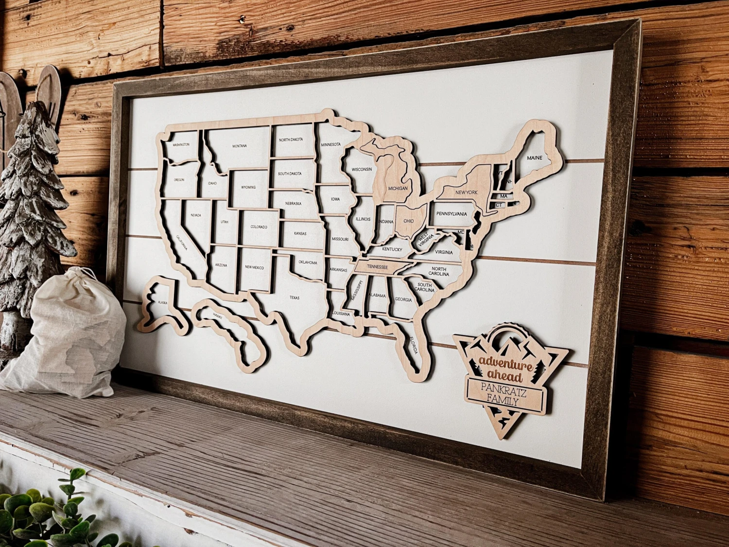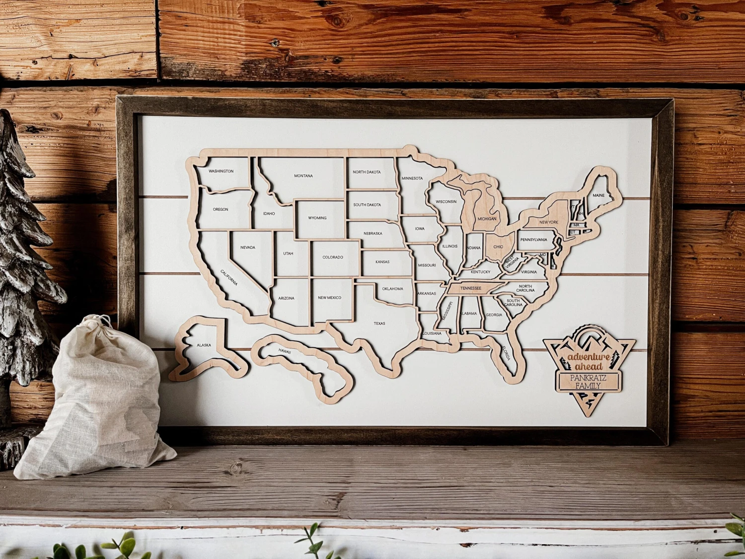 This USA Map Tracker can be finished in a variety of ways — simply choose what you like most! The states come in individual pieces that can be colored or left white. Then get ready to piece together the United States as you explore our beautiful country. Happy trails to you and yours!