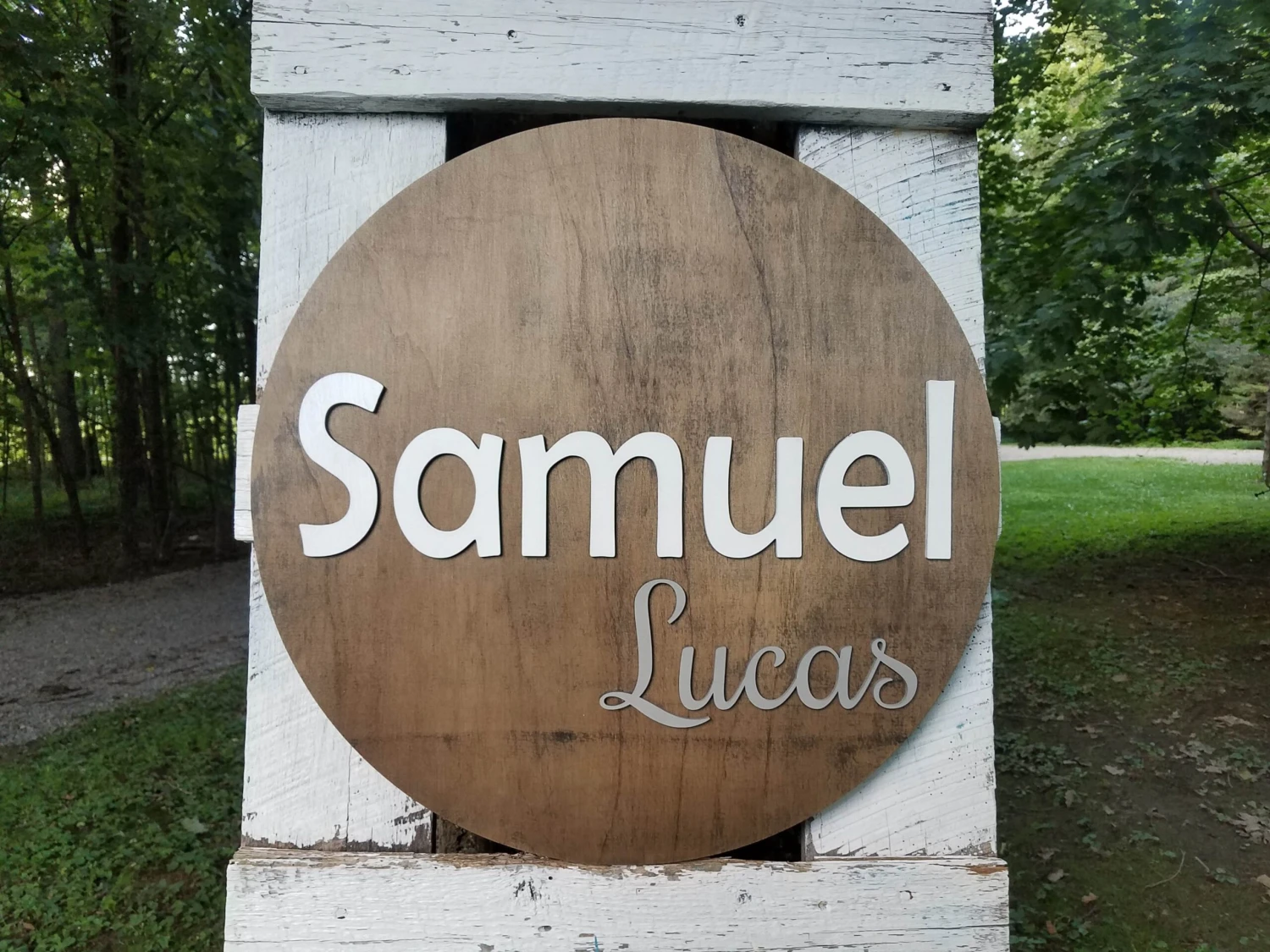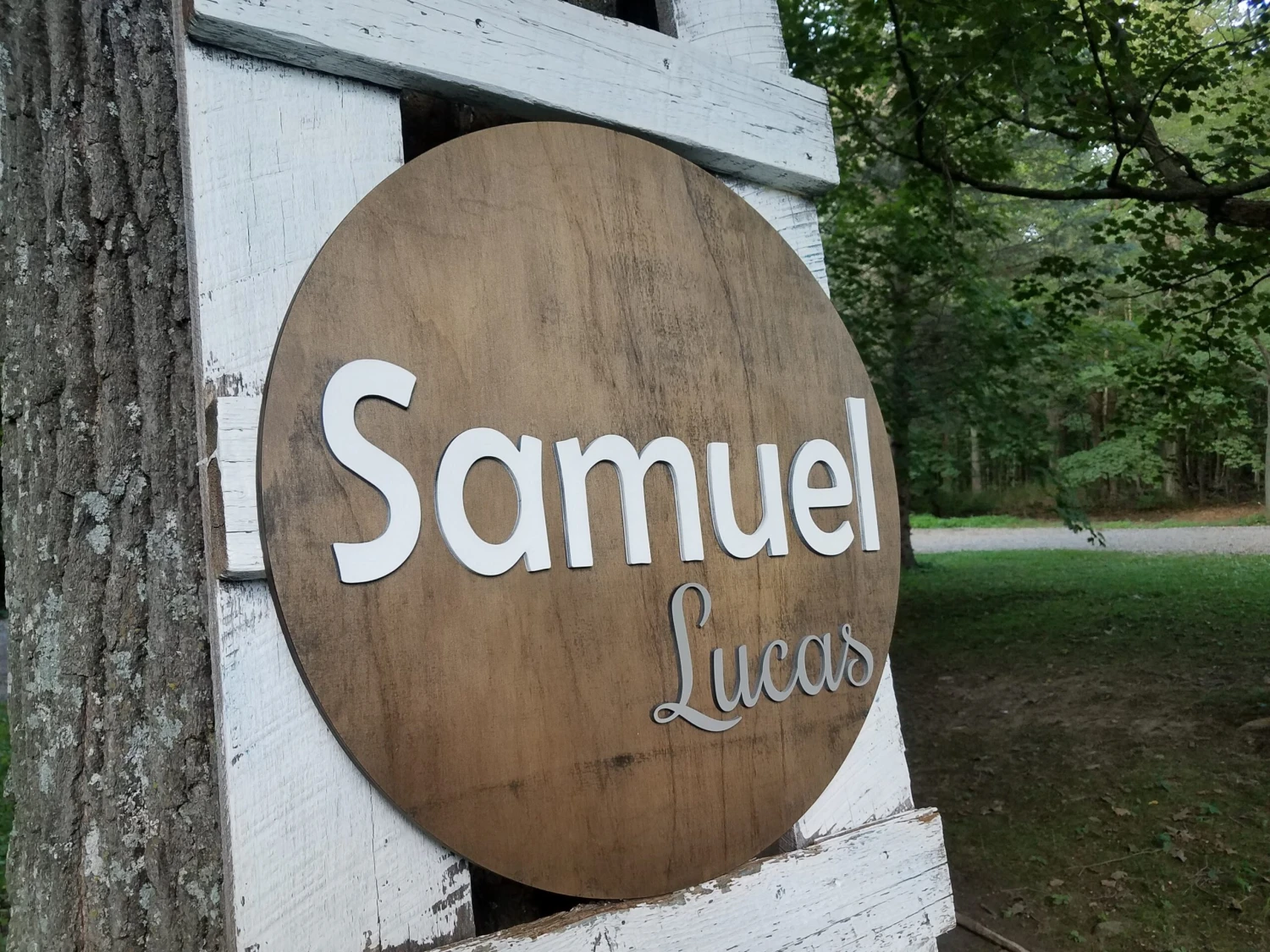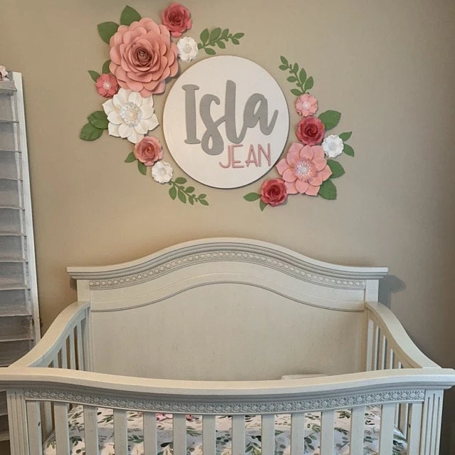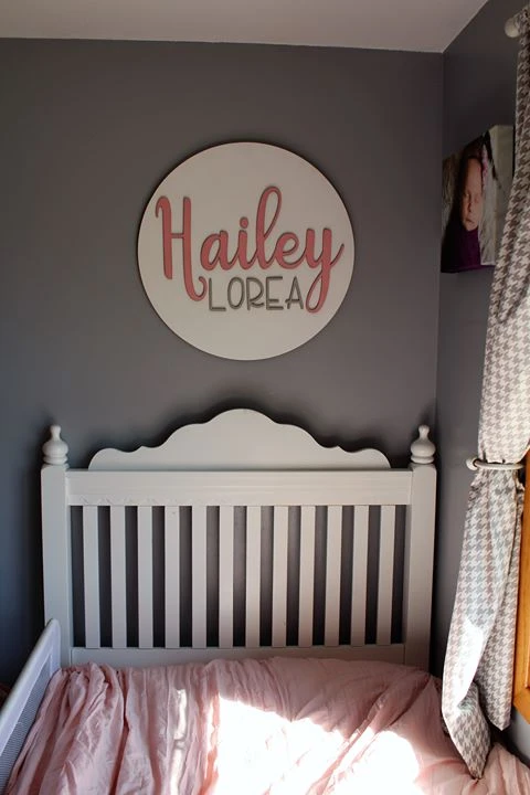 Your little girl or boy will love this round circle sign in their room, highlighting their first and middle name. Pick their favorite colors for background, first name and middle name to perfectly pair this sign with your decor.