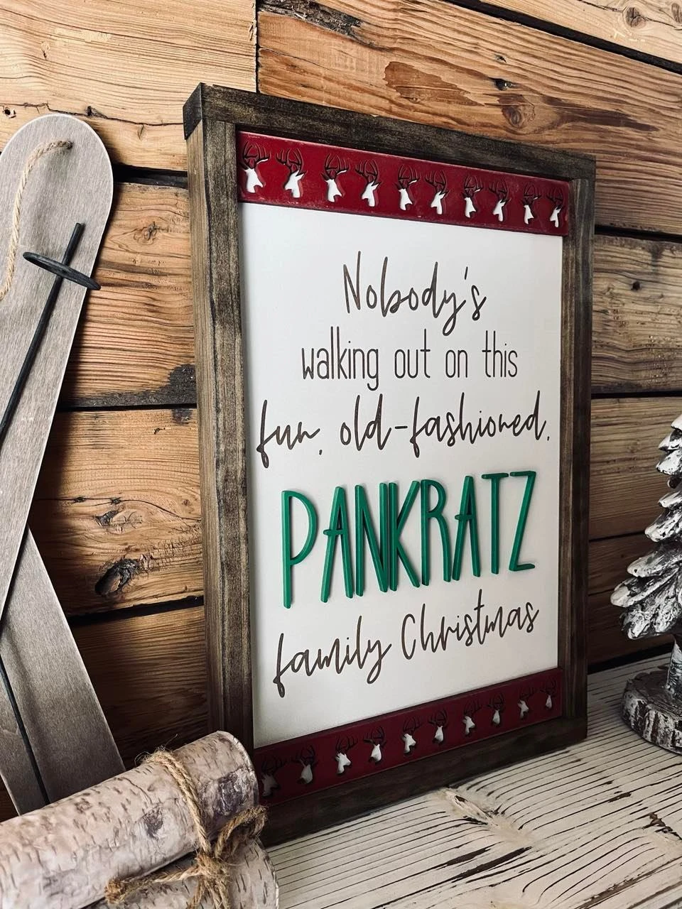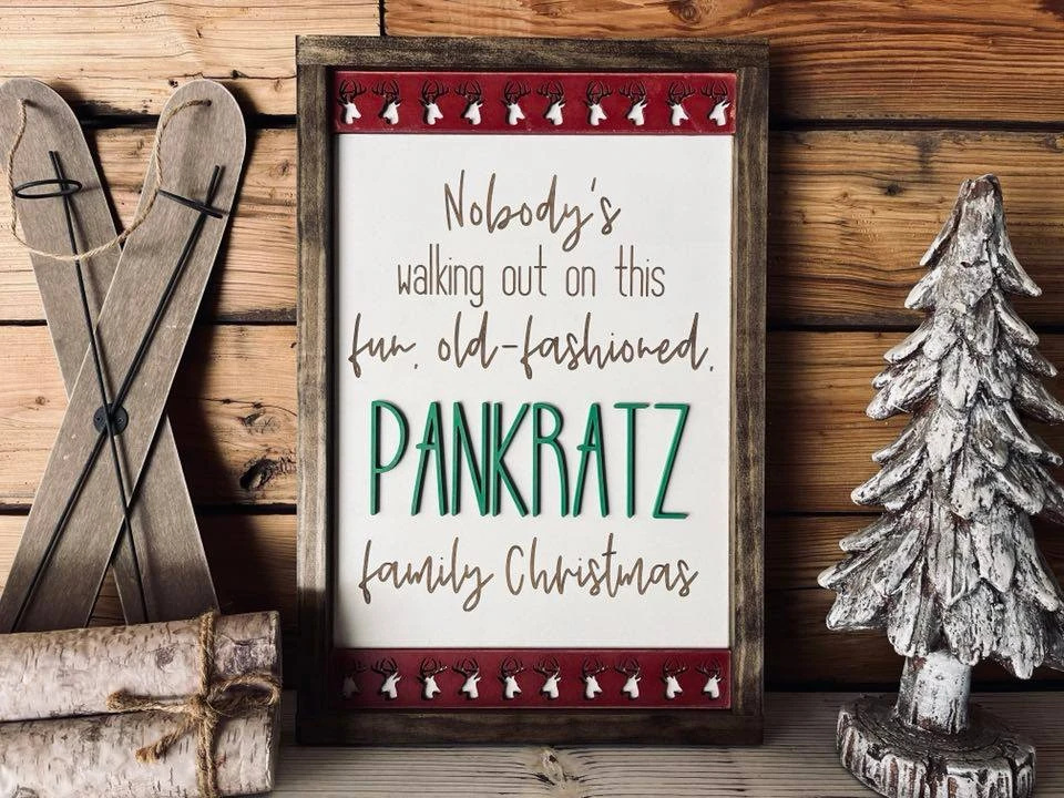 - Last name and reindeer design is raised lettering and the rest of the quote is engraved.