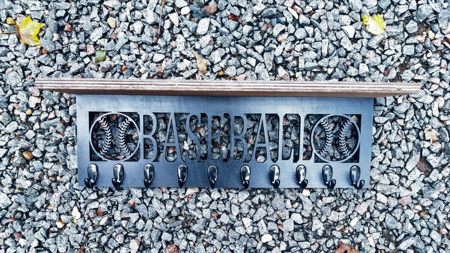 A simply stunning and adorable personalized cutout shelf with hooks, perfect for a child’s bedroom, or a family mudroom.