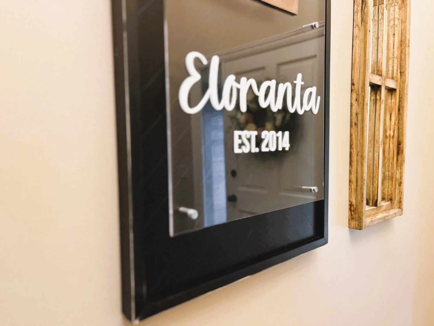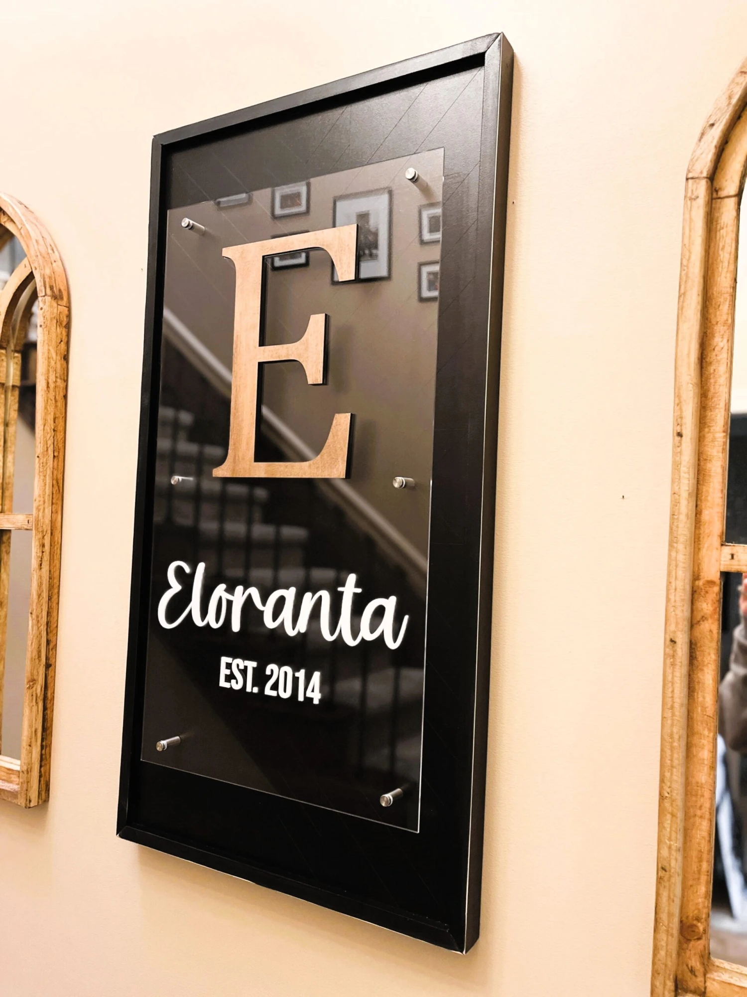 - Last name and established date is white acrylic