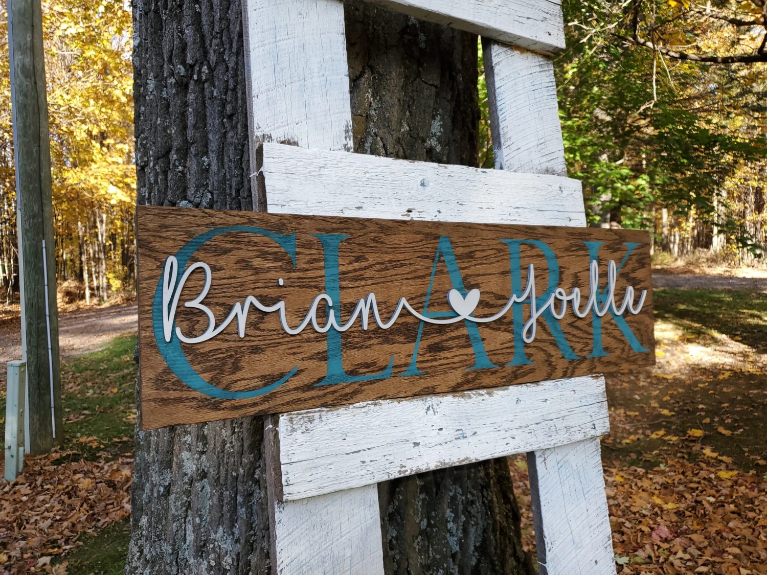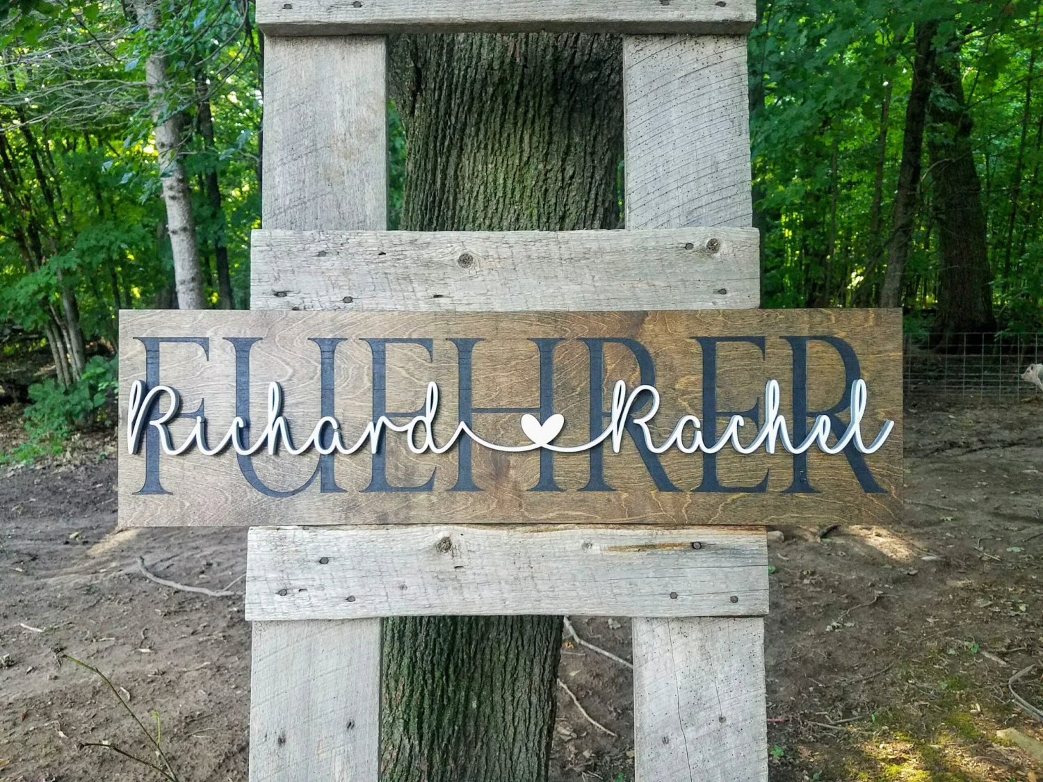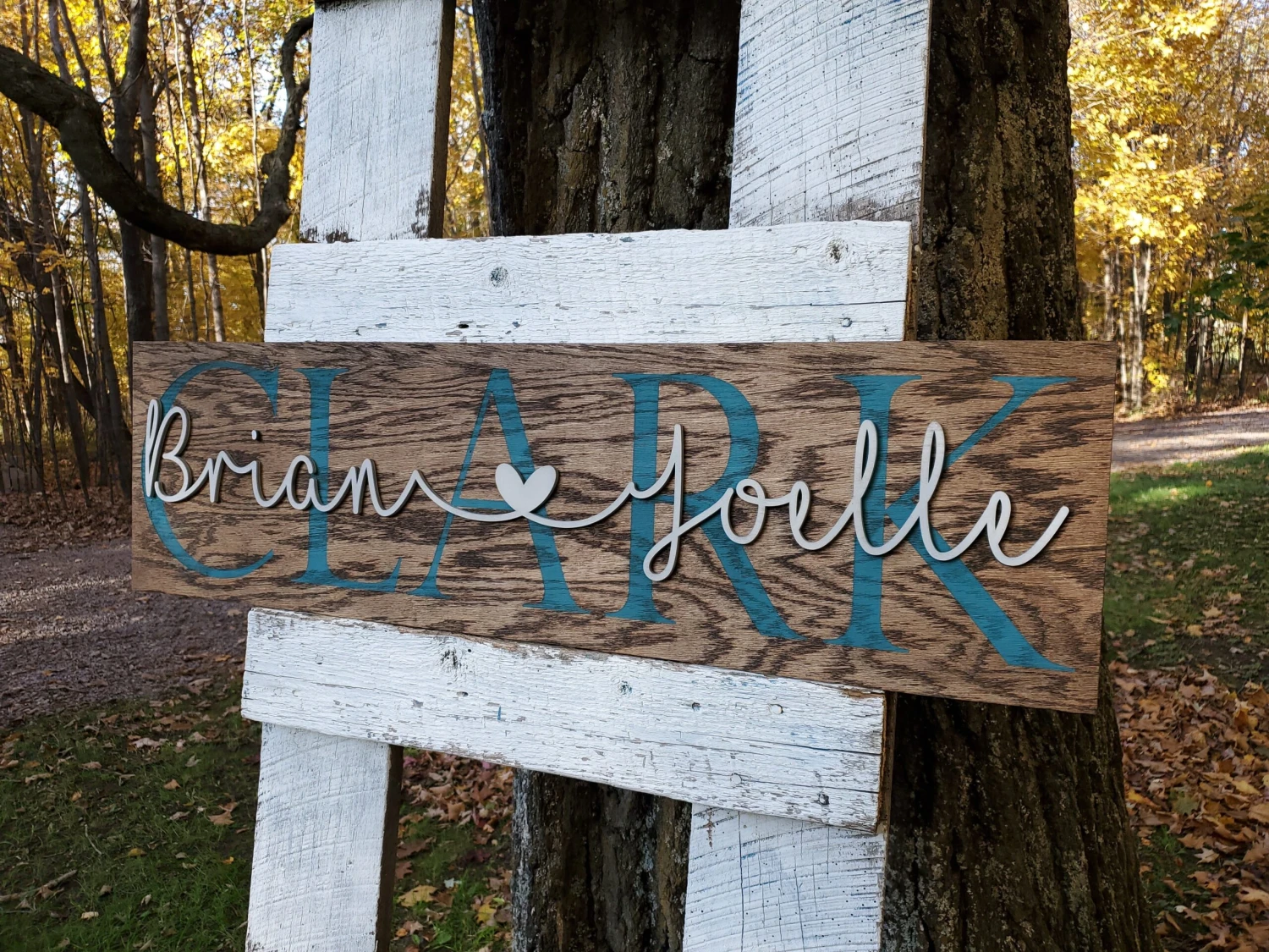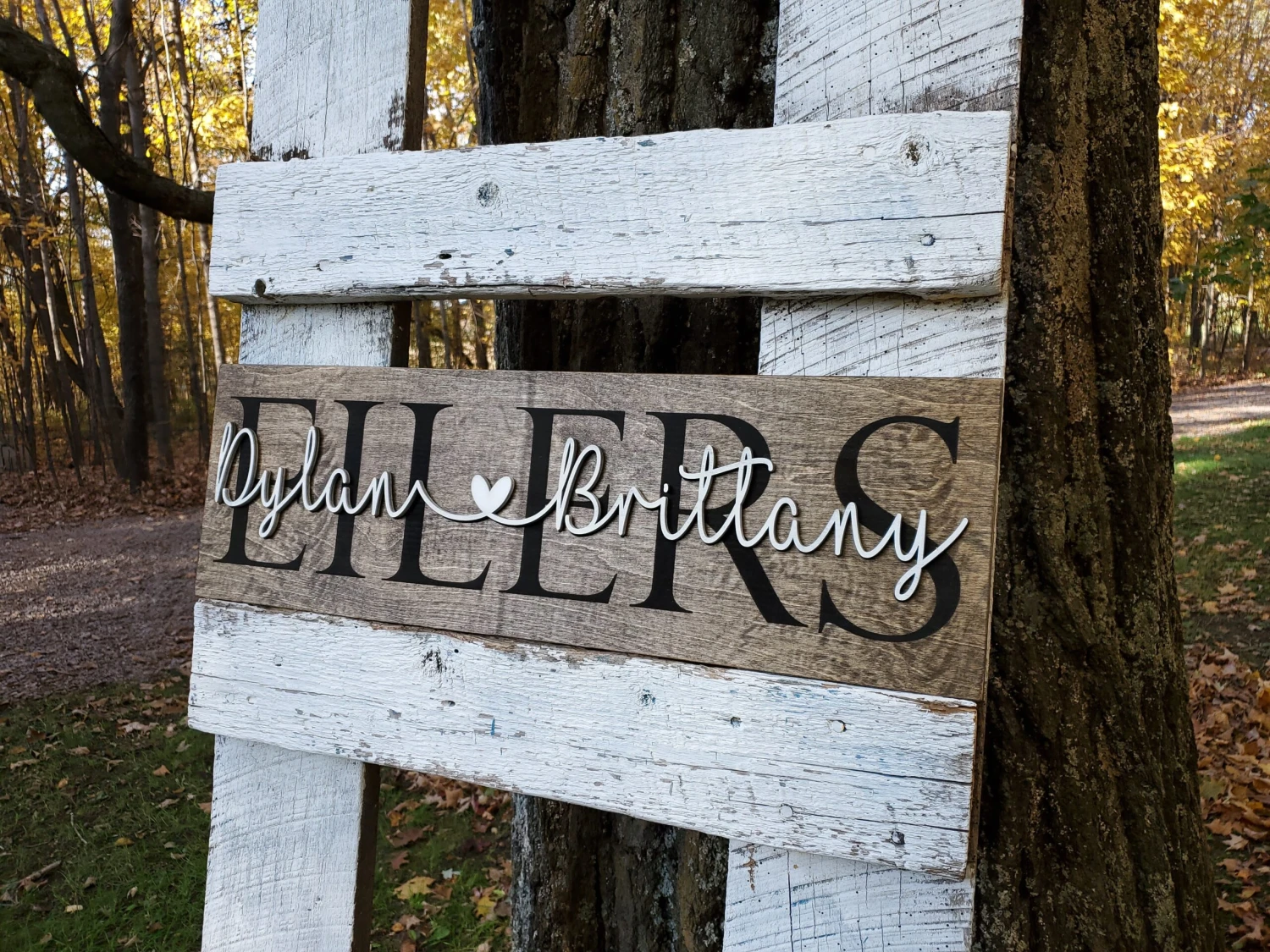 Celebrate your life’s biggest moments with this beautiful wooden sign decorated with your first names and last name.