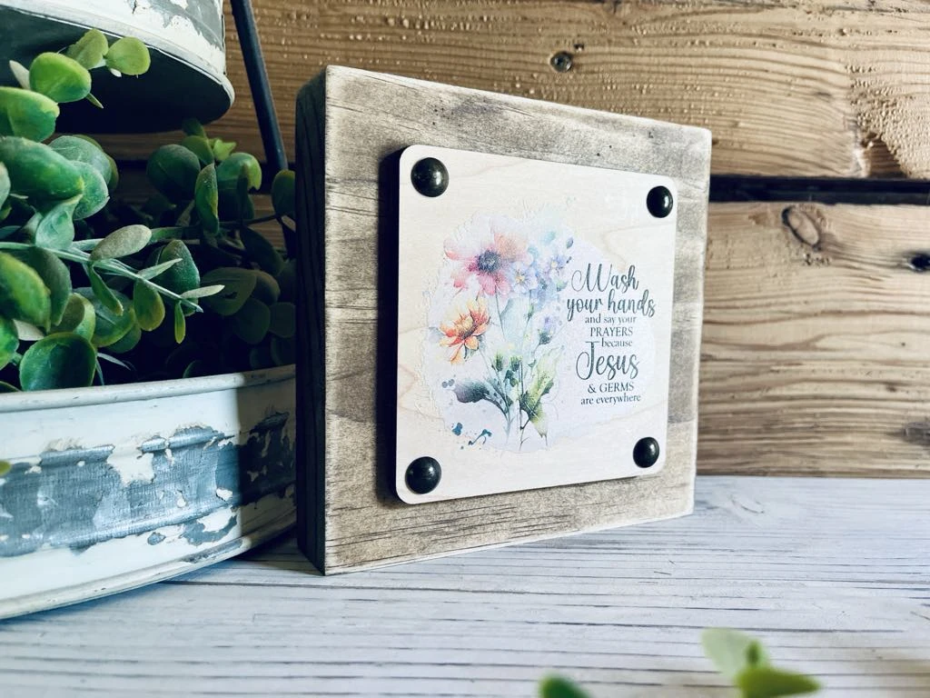 dd charm, humor, and faith to your bathroom or kitchen with this beautifully handcrafted wood block sign featuring the inspirational phrase: