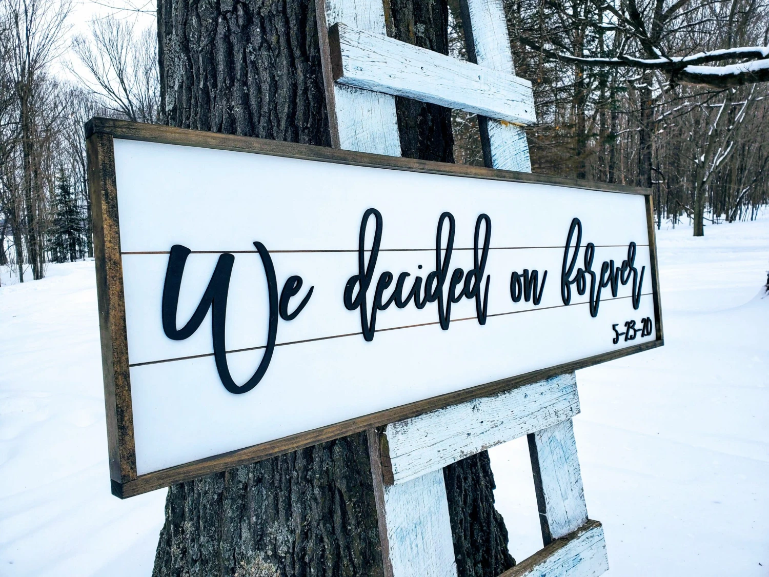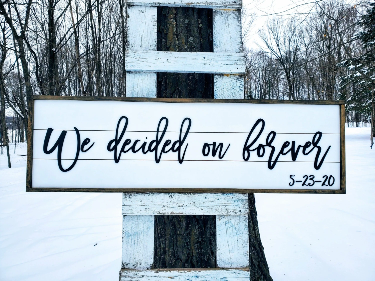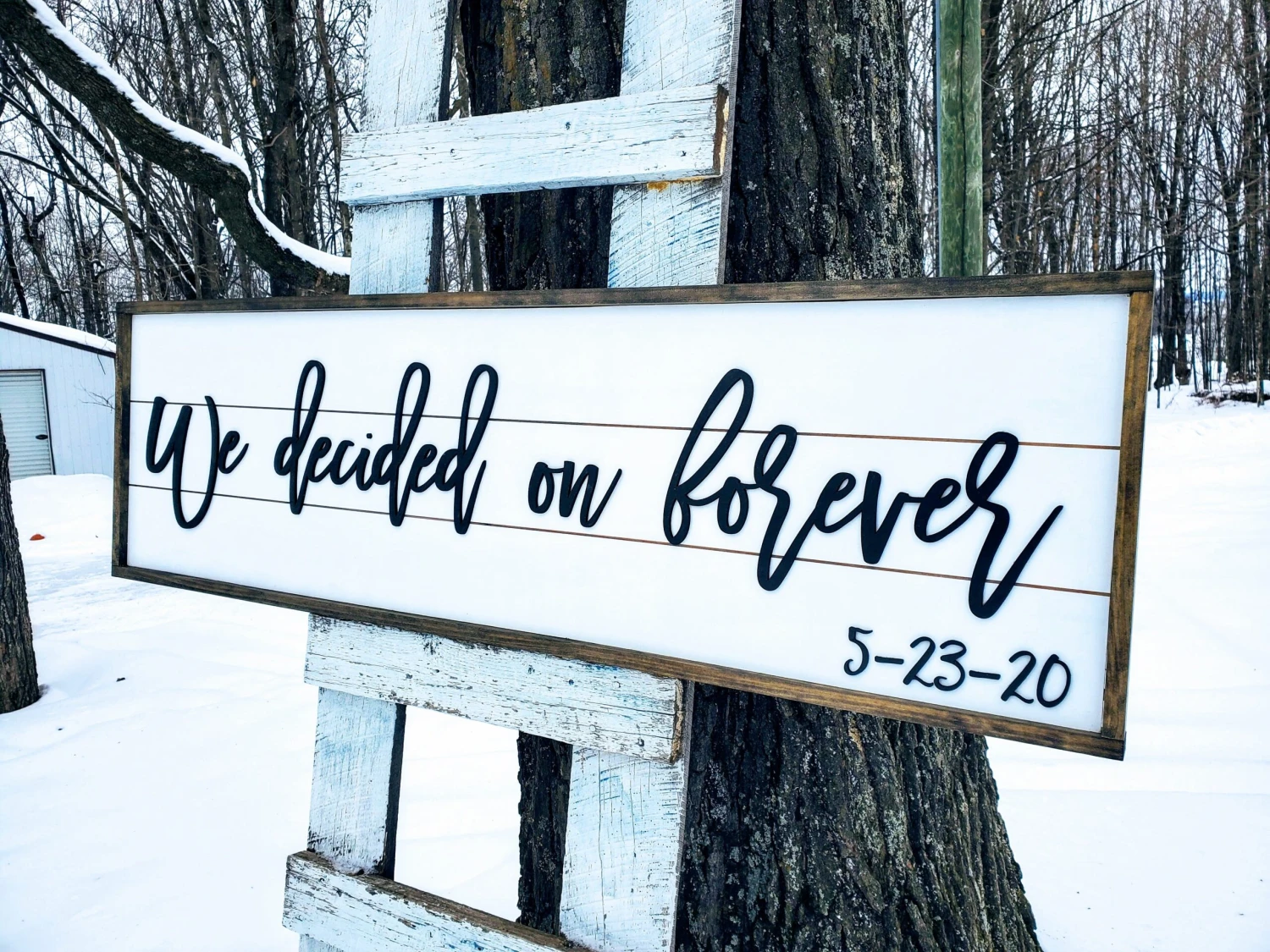 A raised lettering sign, with the saying of “We decided on forever,” complete with your special day date!