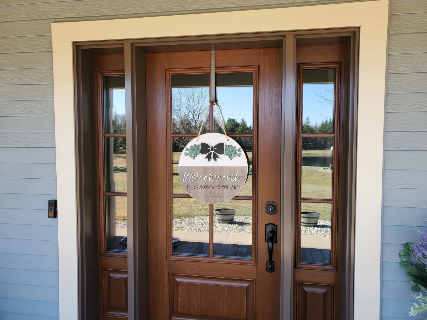 This stunning sign will add the perfect touch of the farmhouse style to the entrance of your home while also being comical!