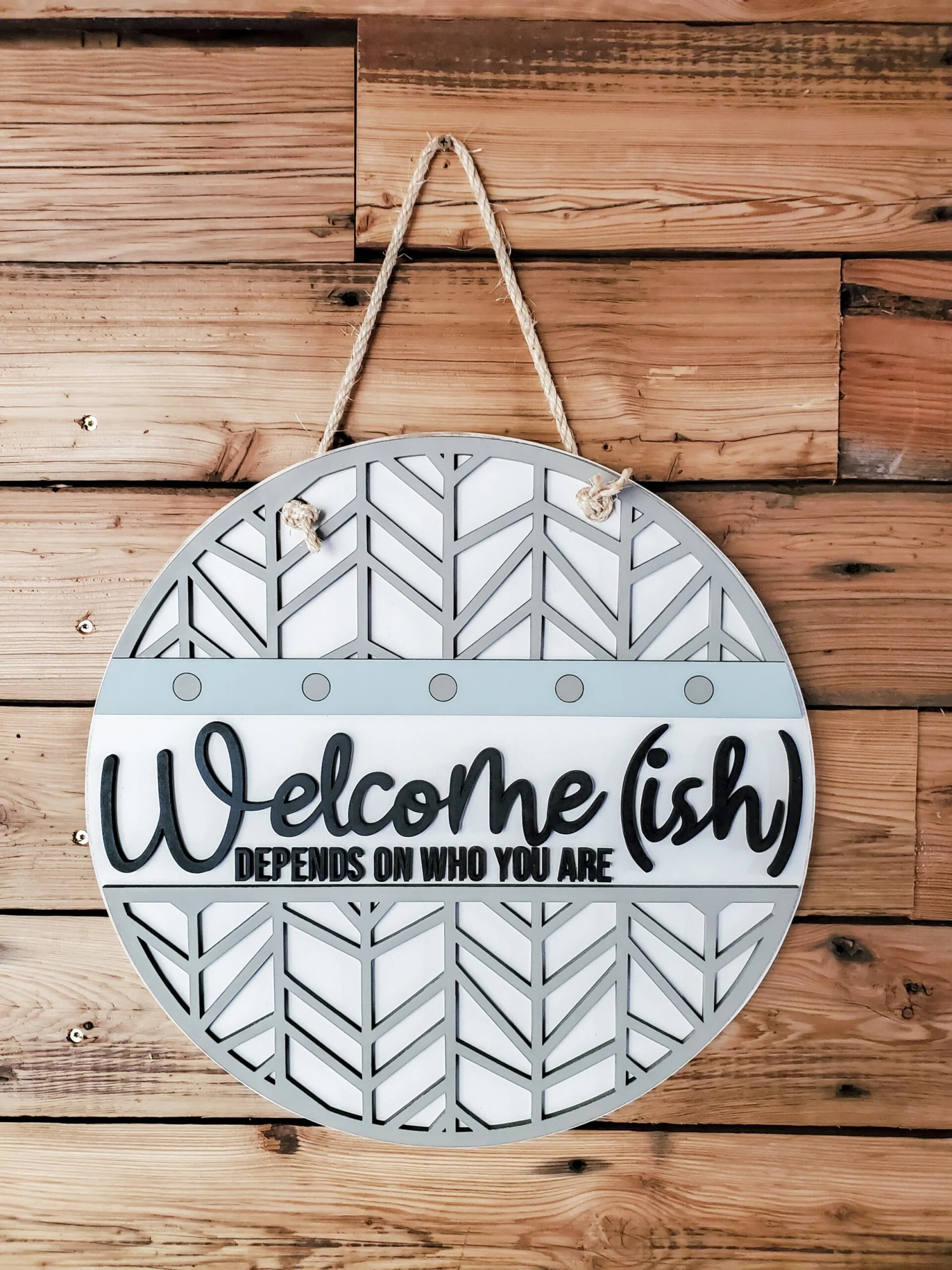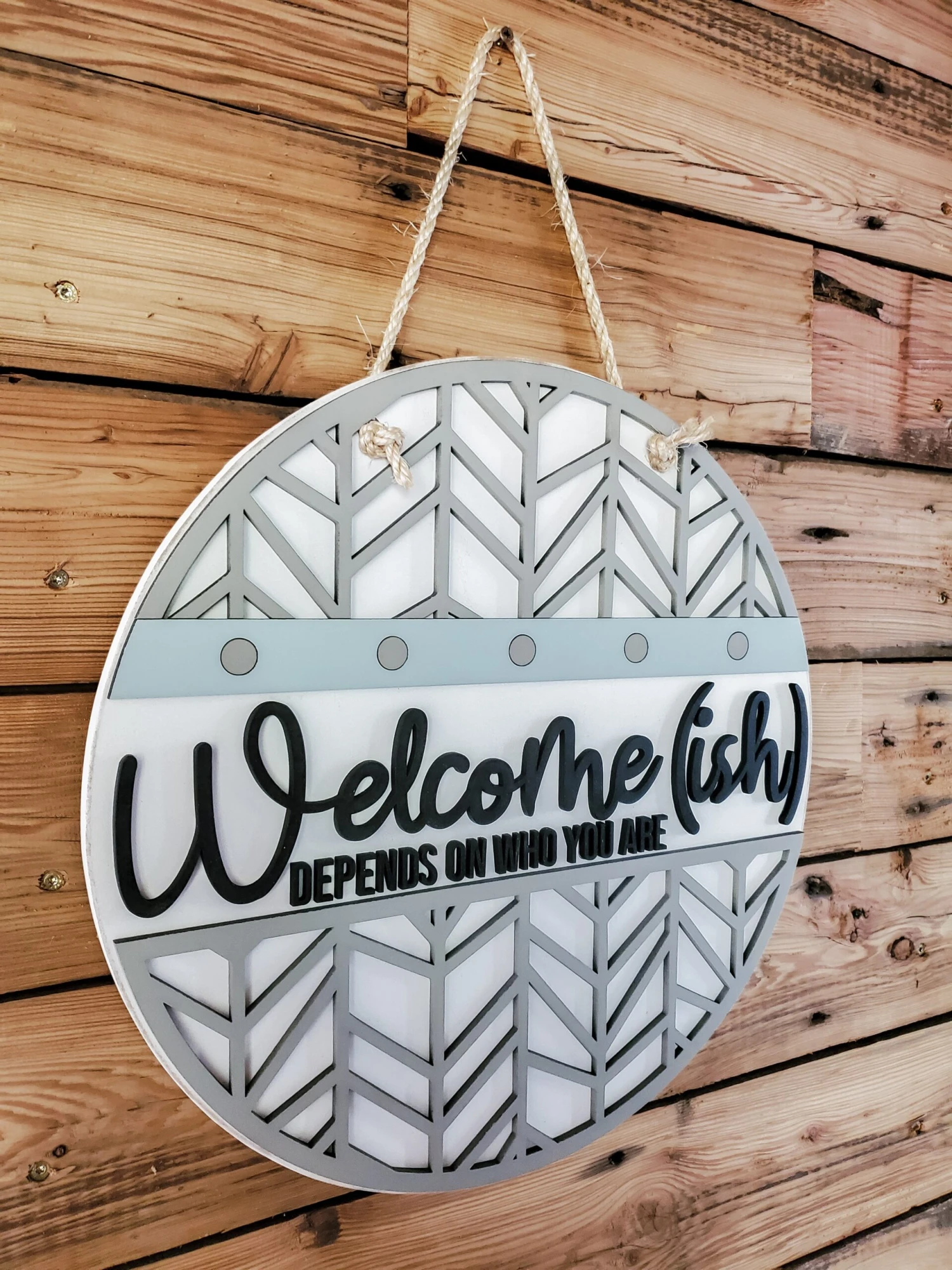 Greet your guests with this stunning and comical sign that can be hung on your front door!