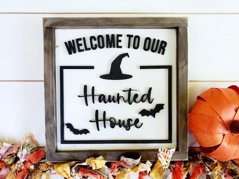 Get your home Halloween and Fall ready with this farmhouse style haunted house sign!