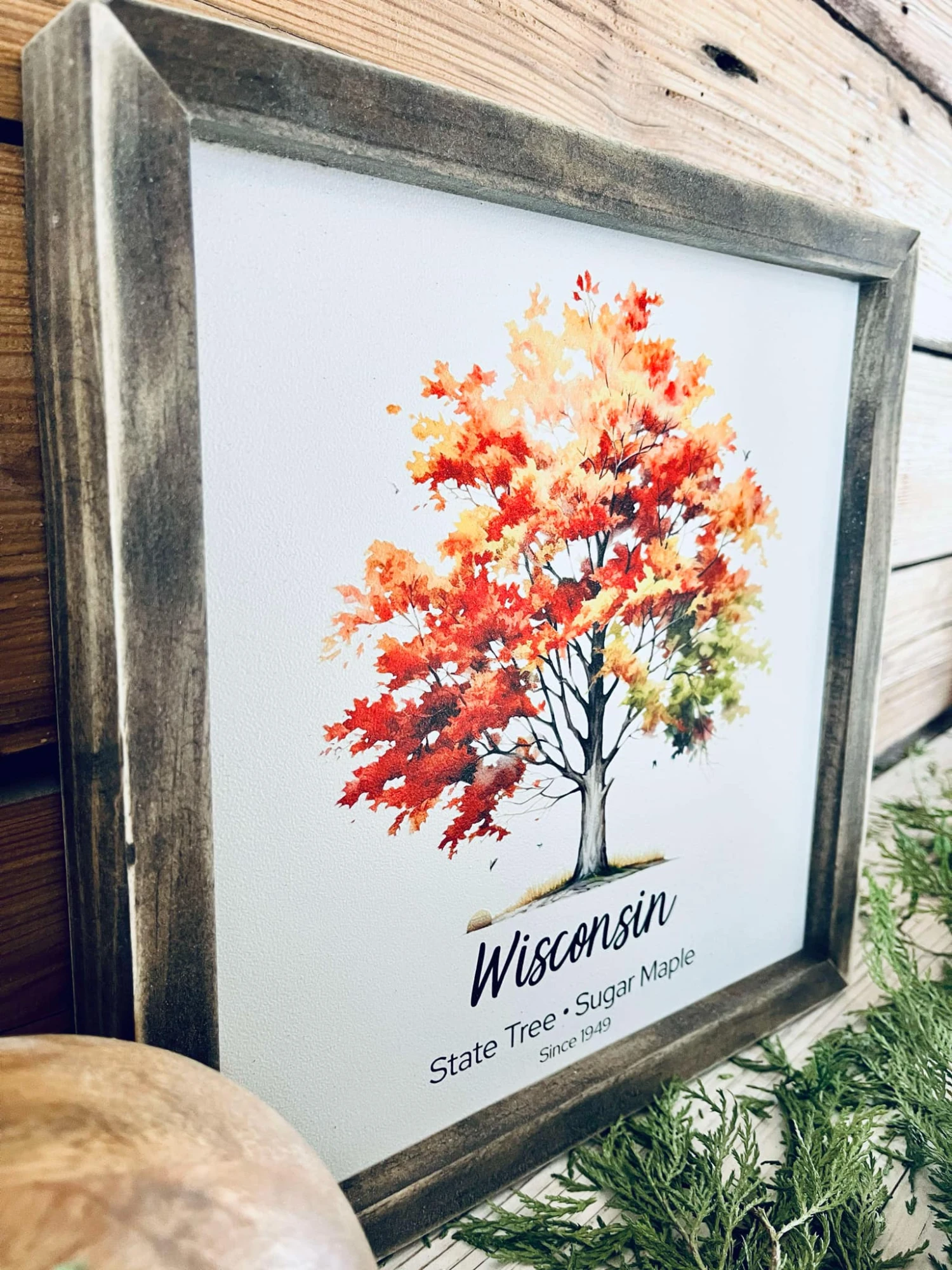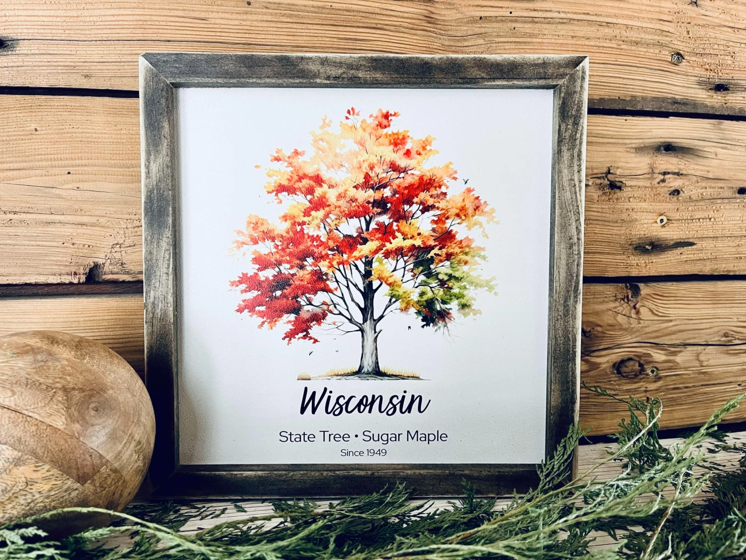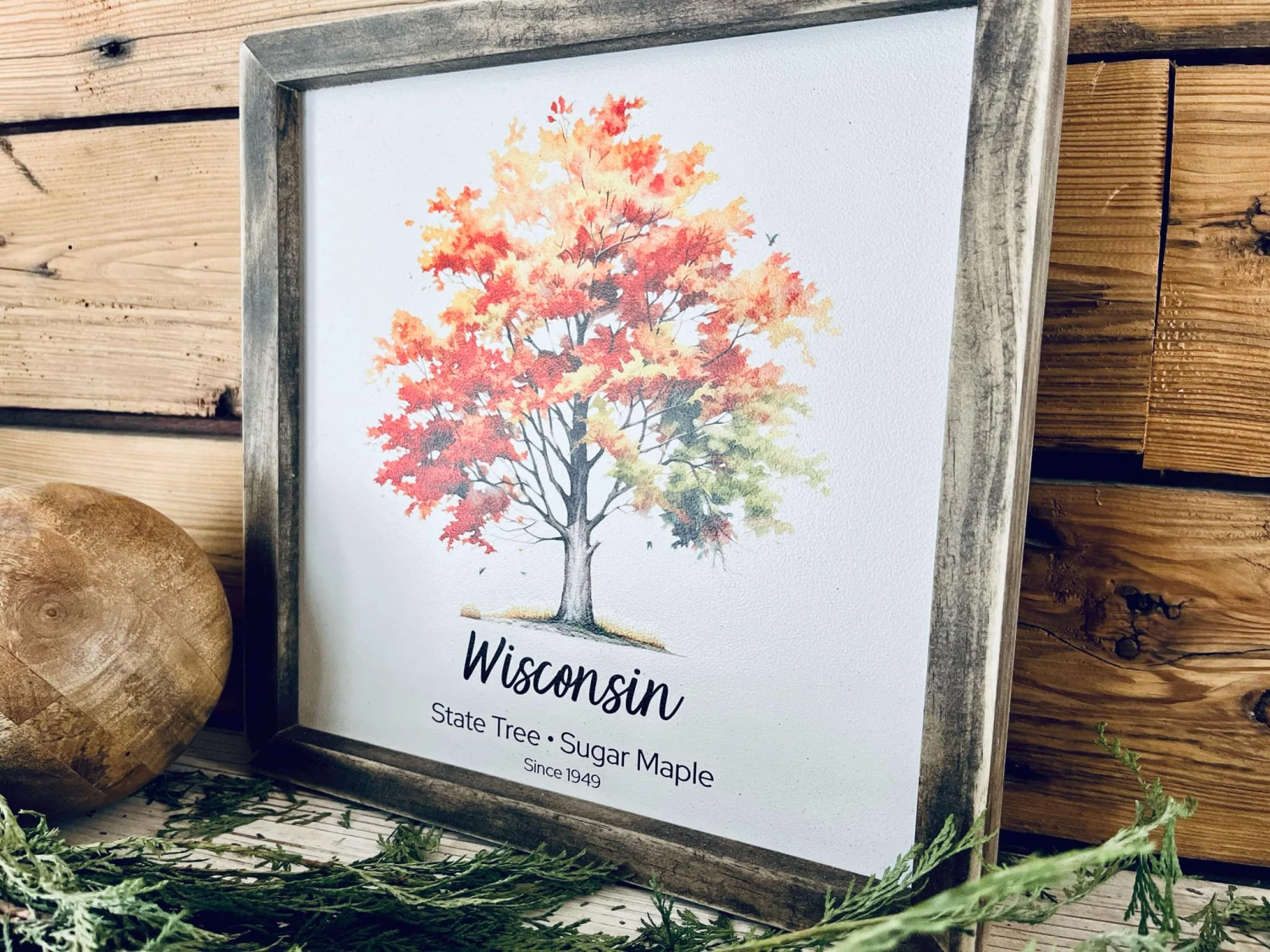 Wisconsin State Tree Sign – Sugar Maple Print – Fall Foliage Wall Art